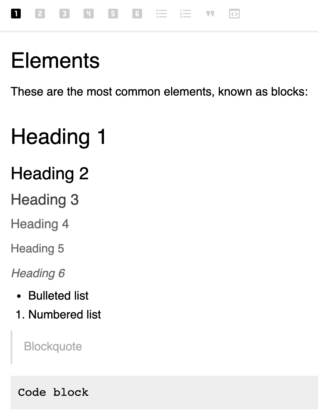 | CodeBlock | Enables support for pre-formatted code blocks. |