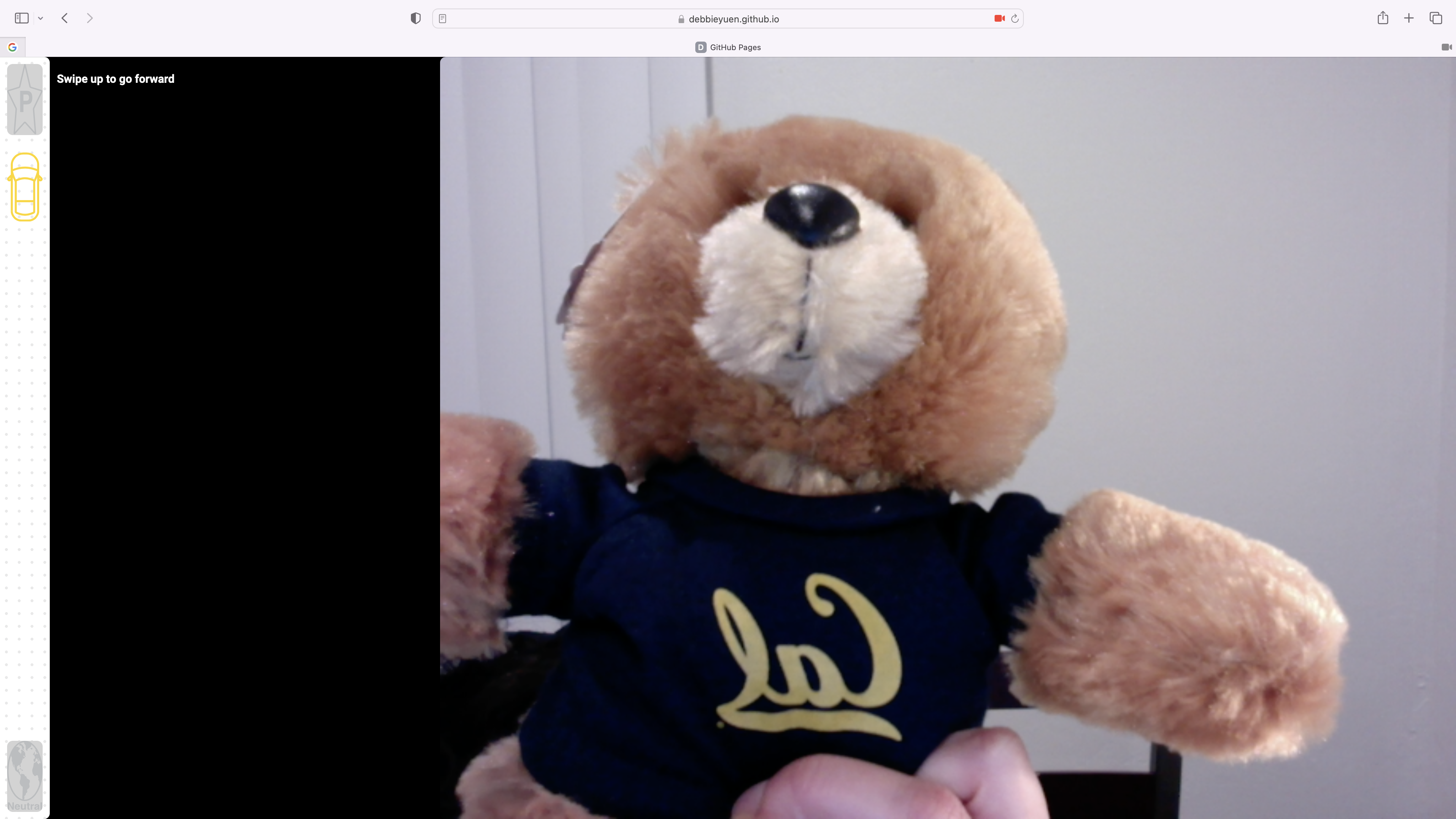 | Yellow car swipe down | 🚌 | Opens up rear view cameras (your webcam in this prototype) |