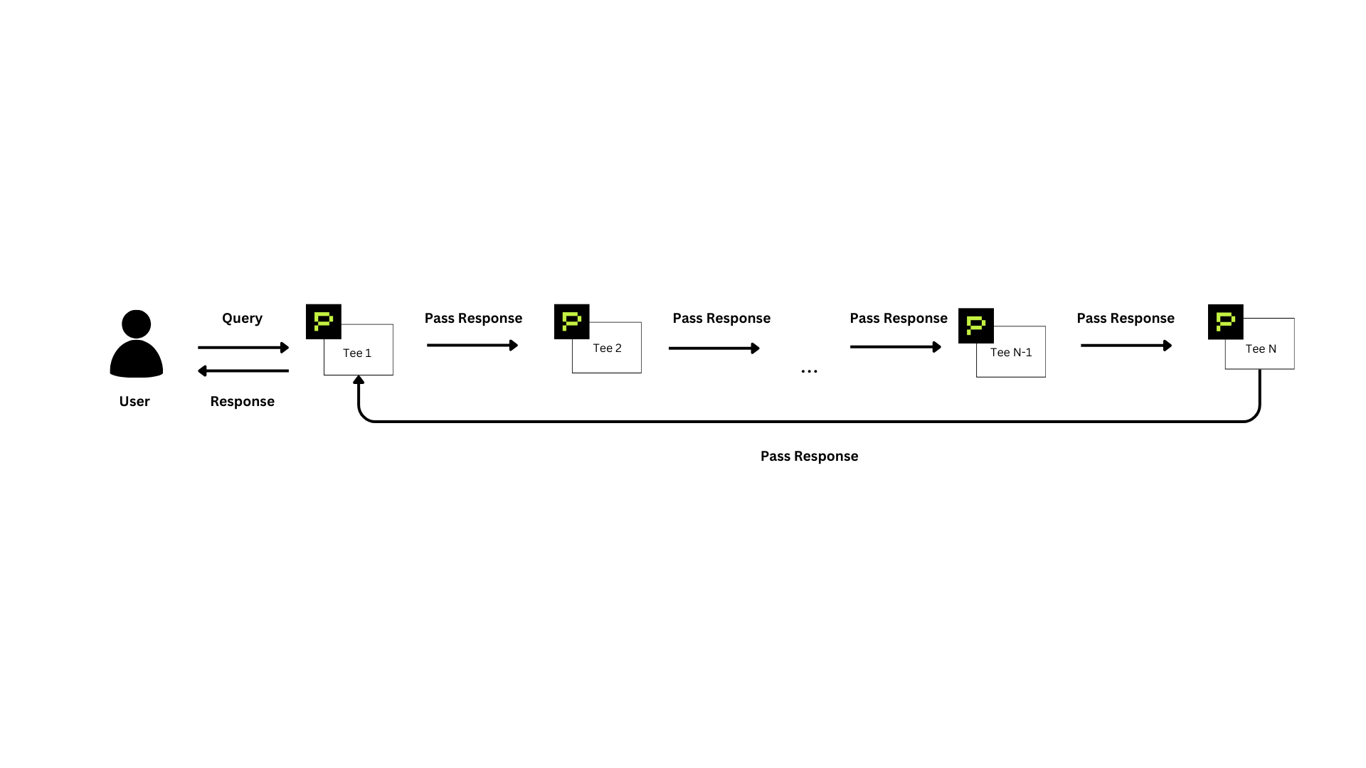 - Return Response to User: TEE 1 delivers the response directly back to the user through the original