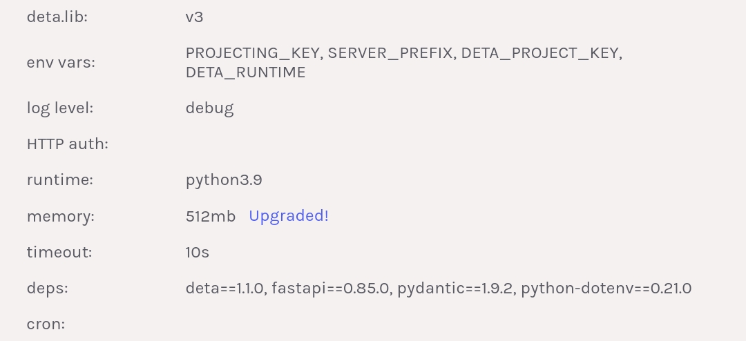 deta update -e .envWhen I used it for the first time, it was normal as shown below
