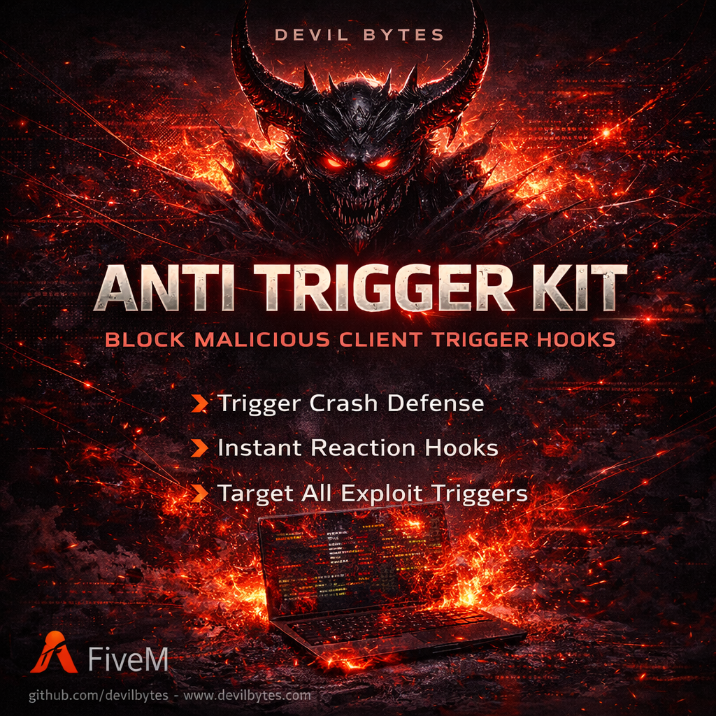 TriggerEvent("db:runtime:sync", "Cheater detected")| Feature | Description | Status |
