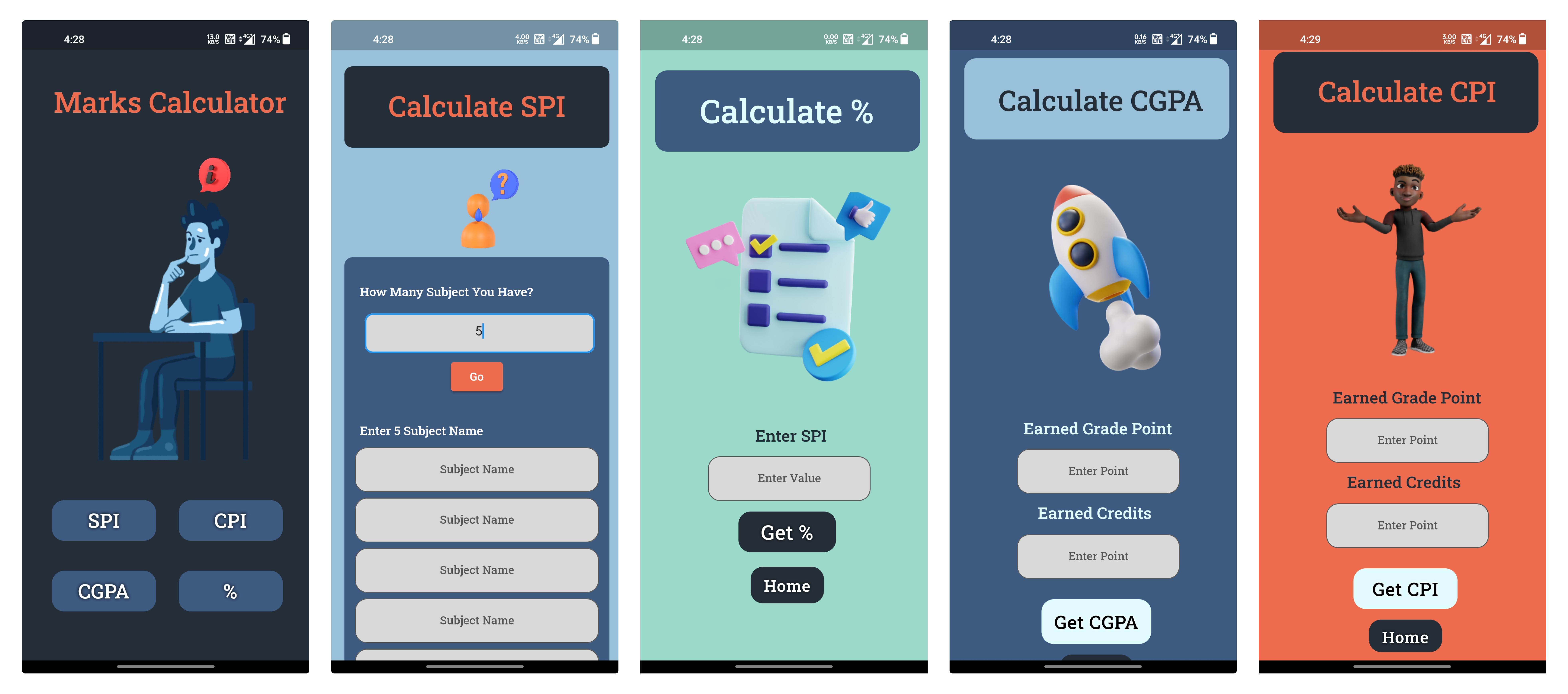 Using this app, students can easily calculate their SPI, CPI, and CGPA. Students can also convert their CGPA into a percentage. This is a very simple application that is made for learning Flutter.