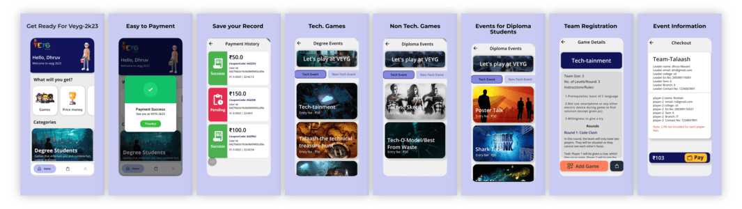 The Veyg application was made for the Veyg 2023 event that was organized at my college. This event contains a lot of technical and nontechnical games and events. Using this VEYG app, all the students on my campus as well as another college campus can register themselves in any technical or nontechnical game by paying some amount of fees online.