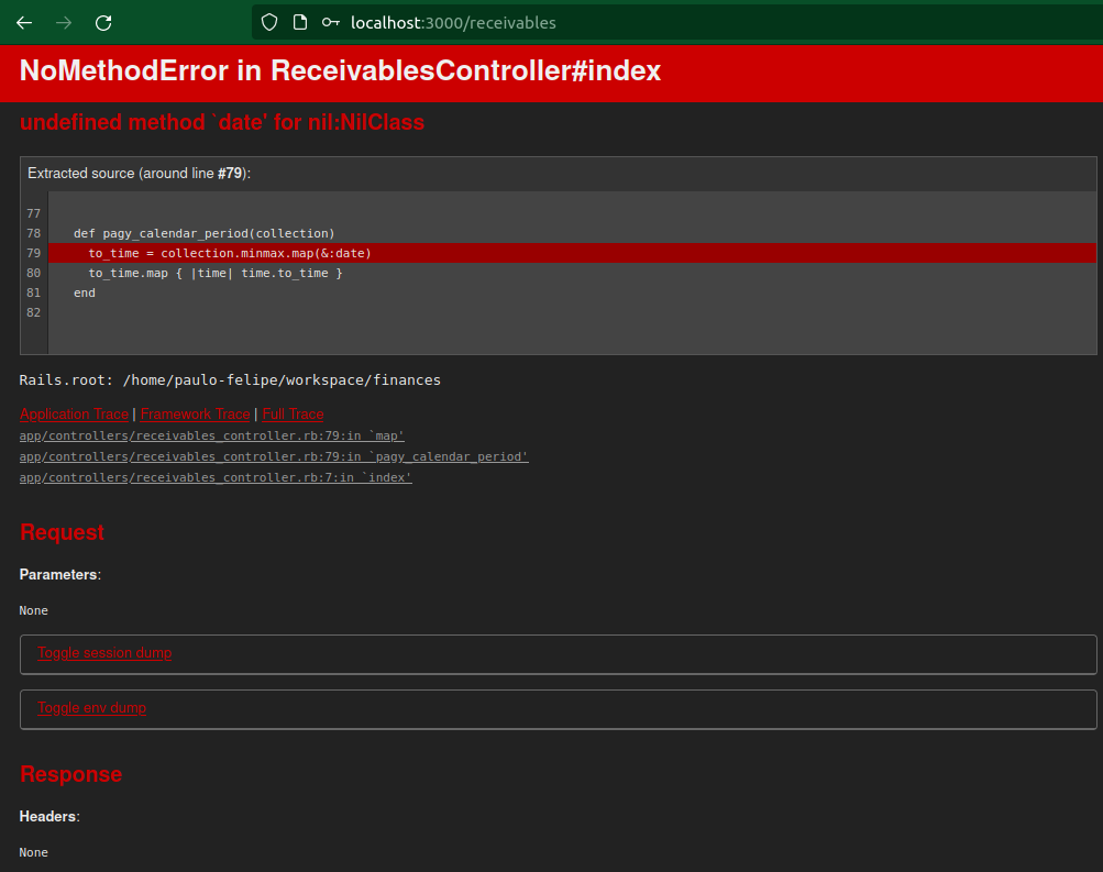 @diegoshakan Steps to reproduce this error: 1. Do not use seed 2. register as a new user 3. Go to `/receivables` Expected Result: Show empty receivable in current date.