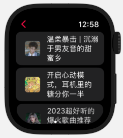 watchWyy - 腕上广陵乐 腕上广陵乐 是一个能在 Apple Watch 上独立收听独家音乐歌曲的软件。无需依赖手机。 功能简述 播放来自网易云音乐的歌曲 支持用户登录 播放远程歌单 搜索歌曲、歌单 查看评论、喜欢音乐 更多功能等您探索…… 使用截图 开发计划 正在计划上架 AppStore 。 安装指南 暂时可参见这里。