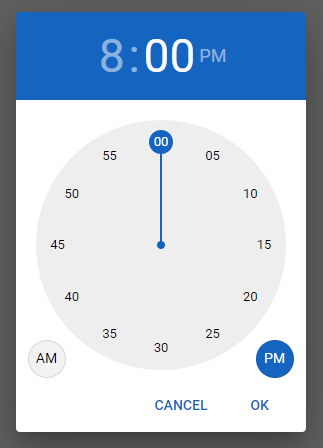 Material design inspired time picker plugin for input elements.