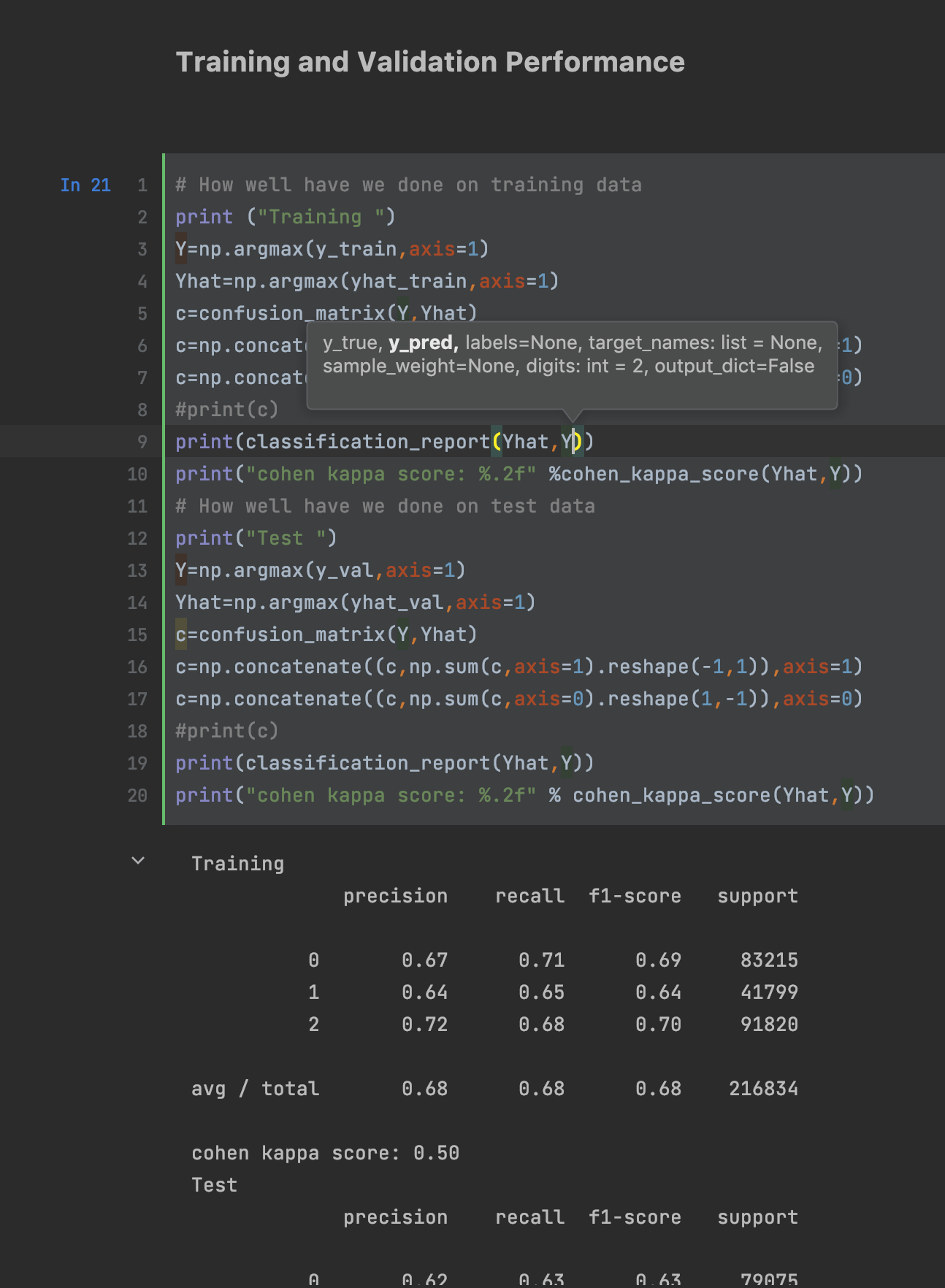 I don't understand why you print(classification_report(y_true=Yhat ,y_pred=Y)) in #1000 notebook's Training and Validation Performance section. I noticed that you have also done this in #2000 notebook. Shouldn't it be classification_report(y_true=Y ,y_pred=Yhat)?