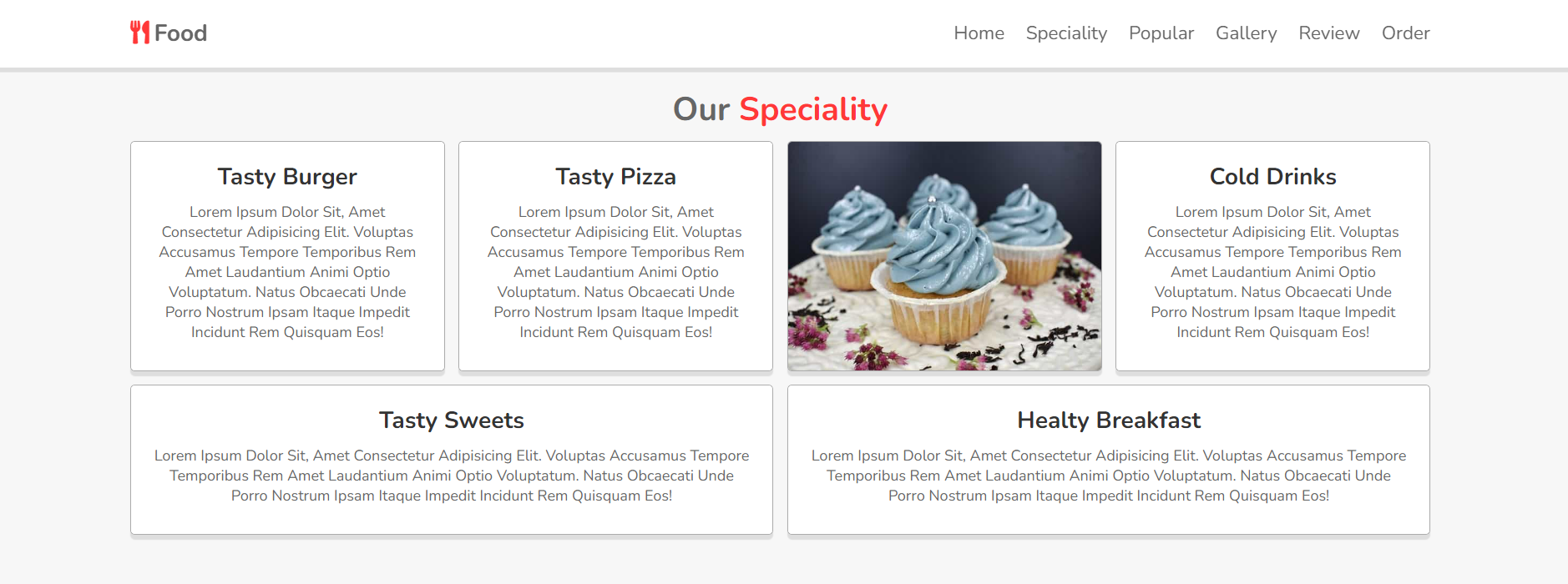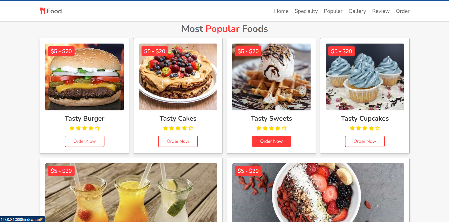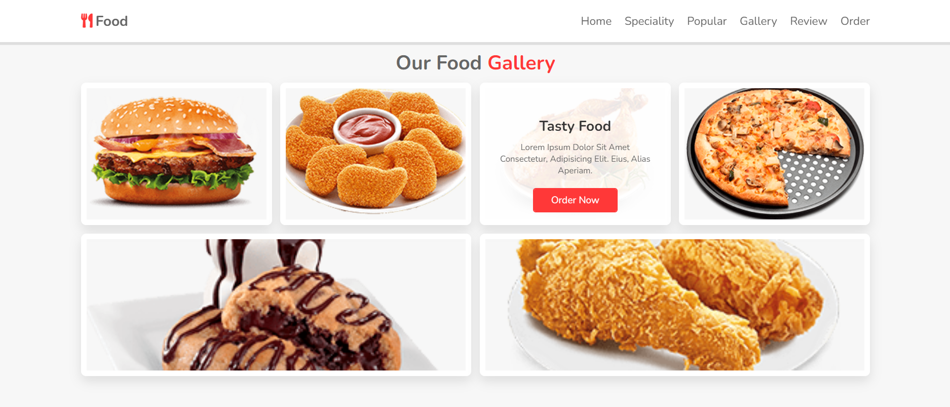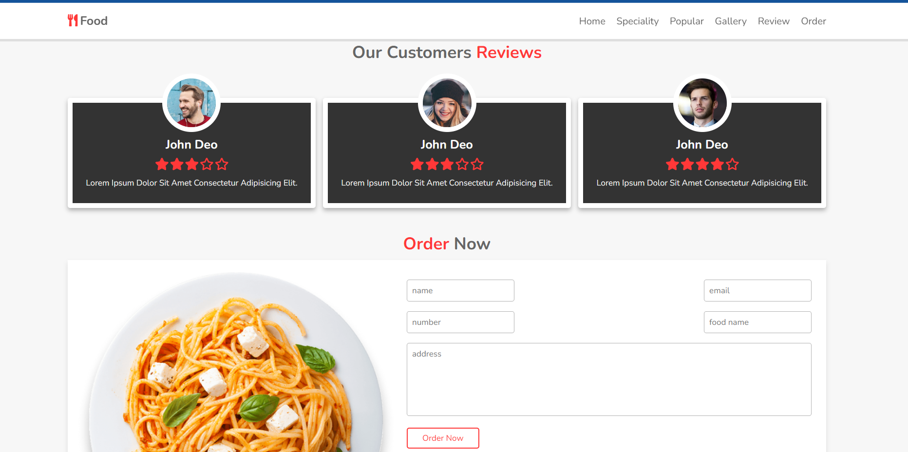 food-website anyone can order food from the website. Frontend UI ---Our Speciality Most Popular Foods Our Food Gallery Our Customers Reviews