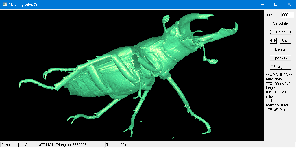 Calculate an isosurface with the MC33 algorithm: