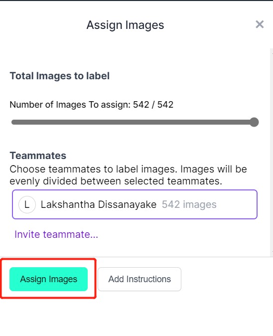 - Step 11. Next we will split the images between "Train, Valid and Test". Keep the default percentages for the distribution and click Add Images