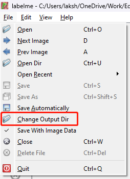 - Step 4. Later, when we annotate images, labelme will generate a json file for each image and this file will contain the annotation information for the corresponsing image. Here we need to specify a directory to store these image annotations because we recommend to store these json files and image files in 2 different folders. Go to