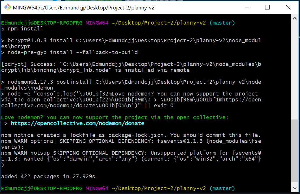 - NPM nodemon - nodemon will watch the files in the directory in which nodemon was started, and if any files change, nodemon will automatically restart your node application.
