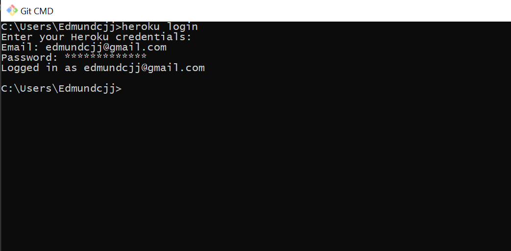 Step 3 => Open git cmd, type the command "heroku login" and enter your credentials