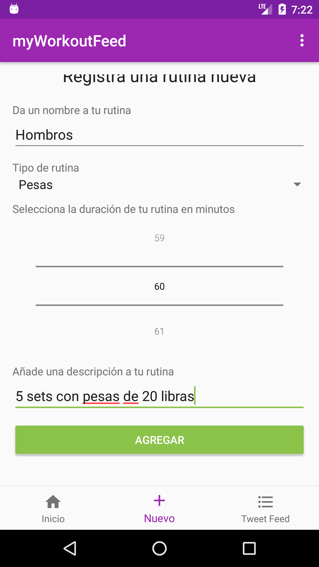 Esta aplicación permite al usuario monitorear sus hábitos de ejercicio por medio de un controlador de rutinas, el usuario podrá ingresar un nombre para su rutina, seleccionar un tipo de rutina y brindar el tiempo que le tomó realizarla.