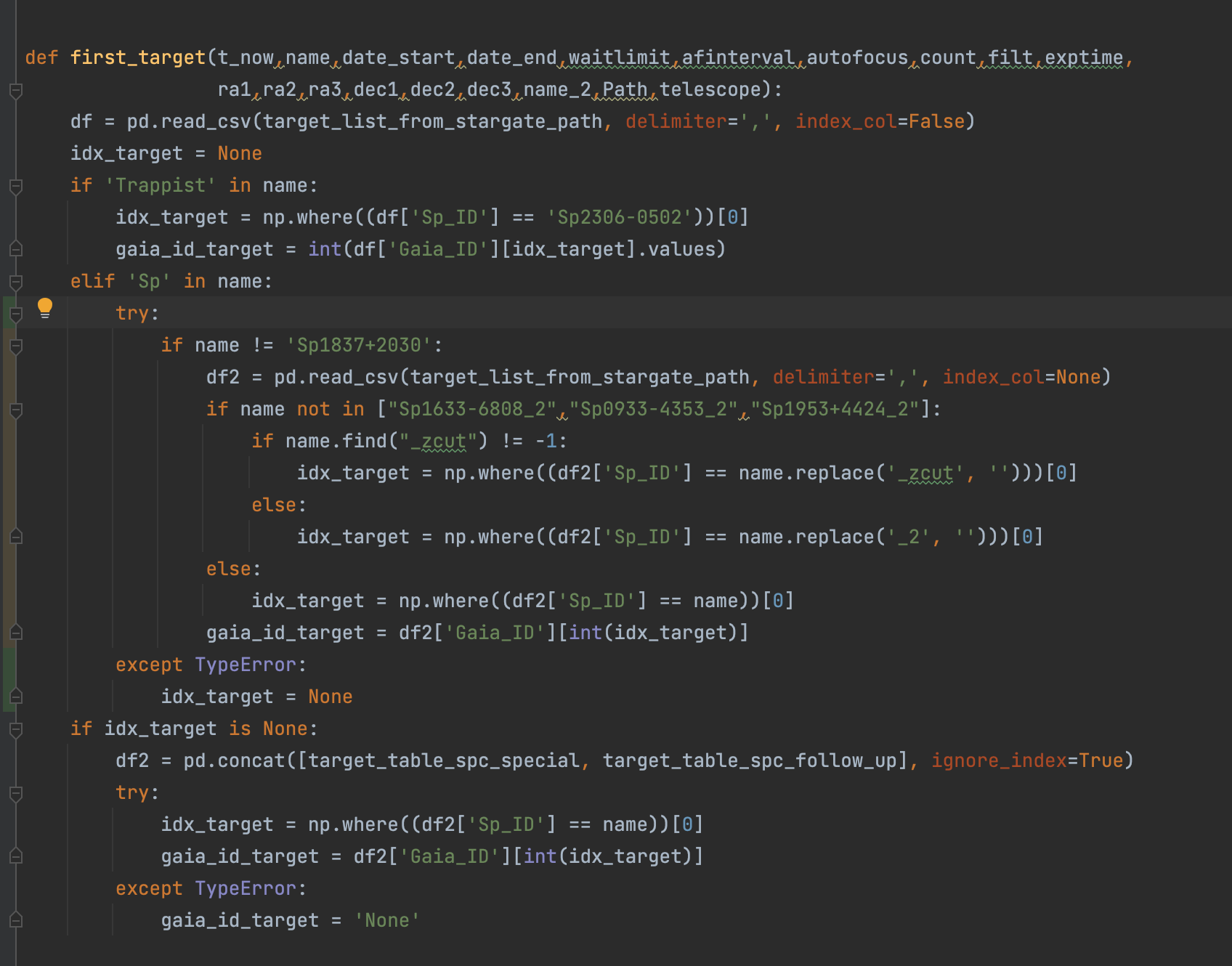 If a Sp target is added to WG6/Stars and not in Stargate, it cannot find the Gaia ID because it's searching automatically in the Stargate list for Sp targets.
