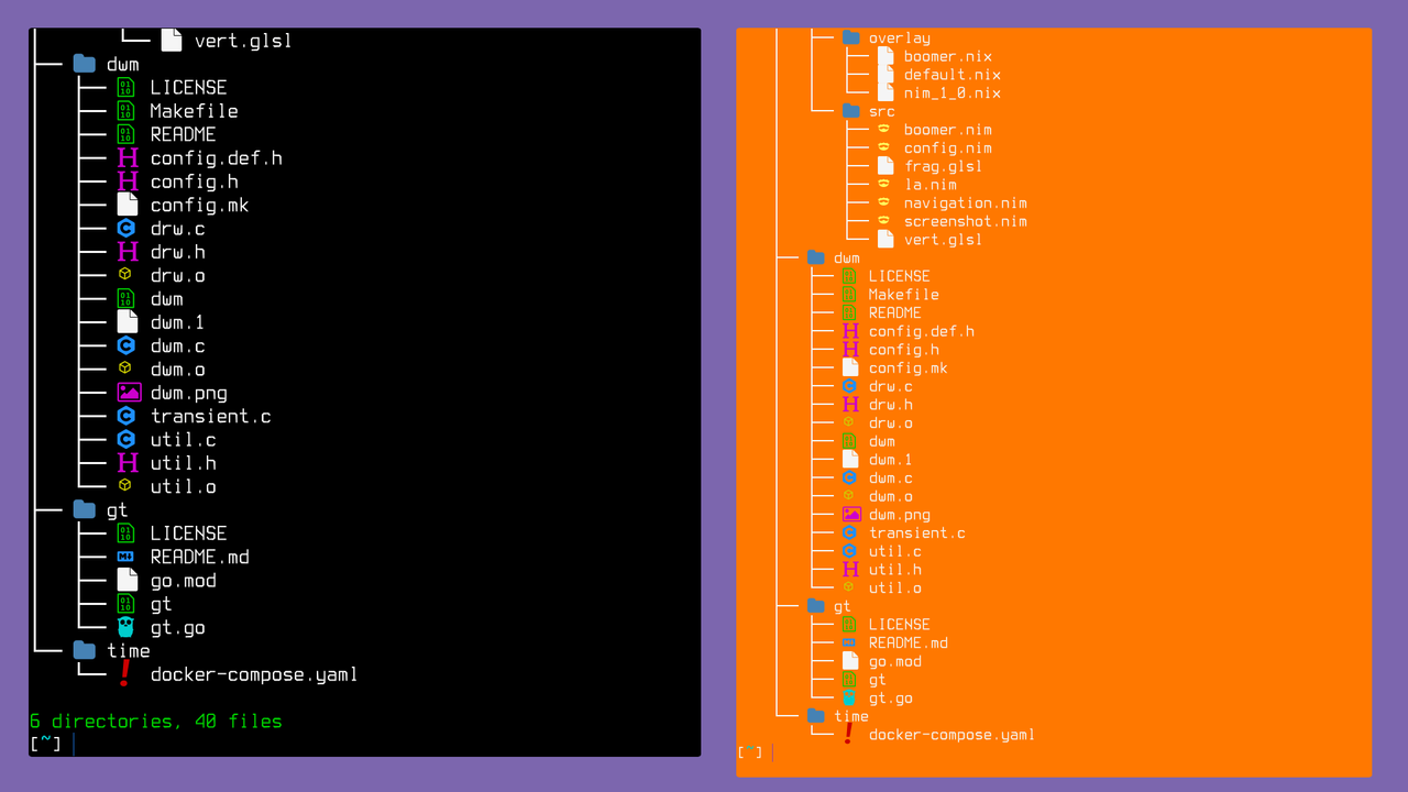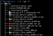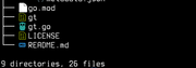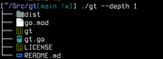 gt, is a command-line tool written in Go that displays a tree of files and directories with colored icons.