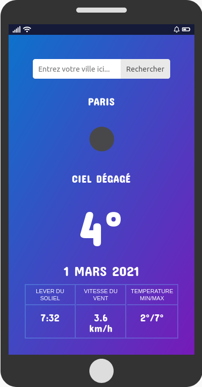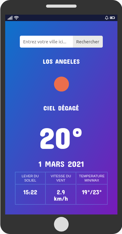 meteo-api est application web pour afficher la météo, crée avec pour mettre en pratique l'utilisation des données à partir d'une l'API.