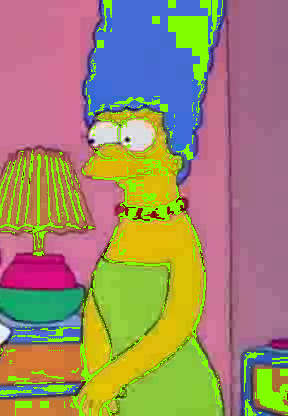 A análise é baseada em cores com a aplicação de uma tolerância para cada um dos personagens e caracterÃstica desejada. Na tabela abaixo o processo de extração de caracterÃsticas para da Marge onde a cada etapa o range de cores estava sendo calibrado.