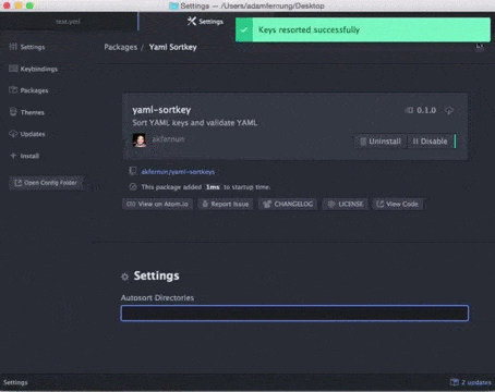 - Install via Atom's Package manager by searching for "easysort-yaml"