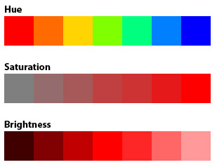4-Saturation: is the intensity of a hue from gray tone (no saturation) to pure, vivid color (high saturation).