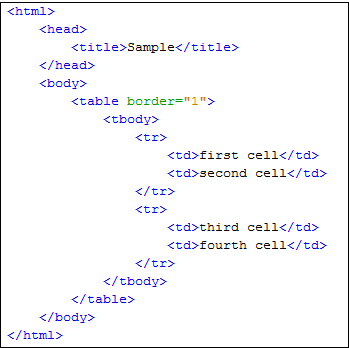 when create table use tag table when create row to the table use tag tr when create column use td tag.