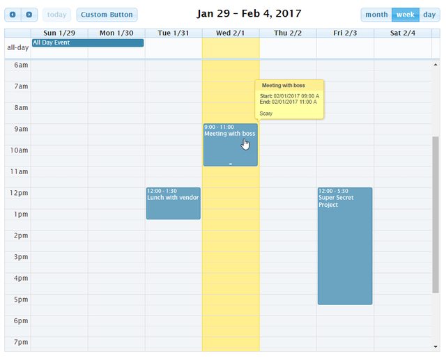 This event calendar implements JQuery FullCalendar in ASP.NET.