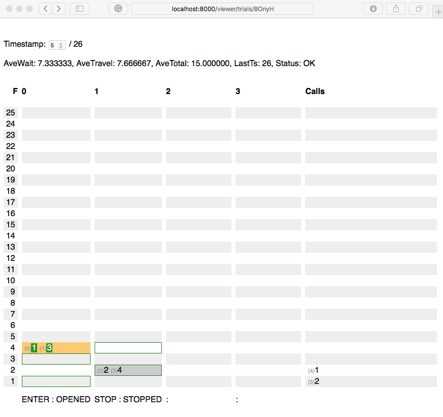http://localhost:8000/viewer 로 접속하면 지금까지 서버에서 수행한 token 목록이 나오고, 이를 클릭하면 elevator simulation 결과를 확인할 수 있습니다.