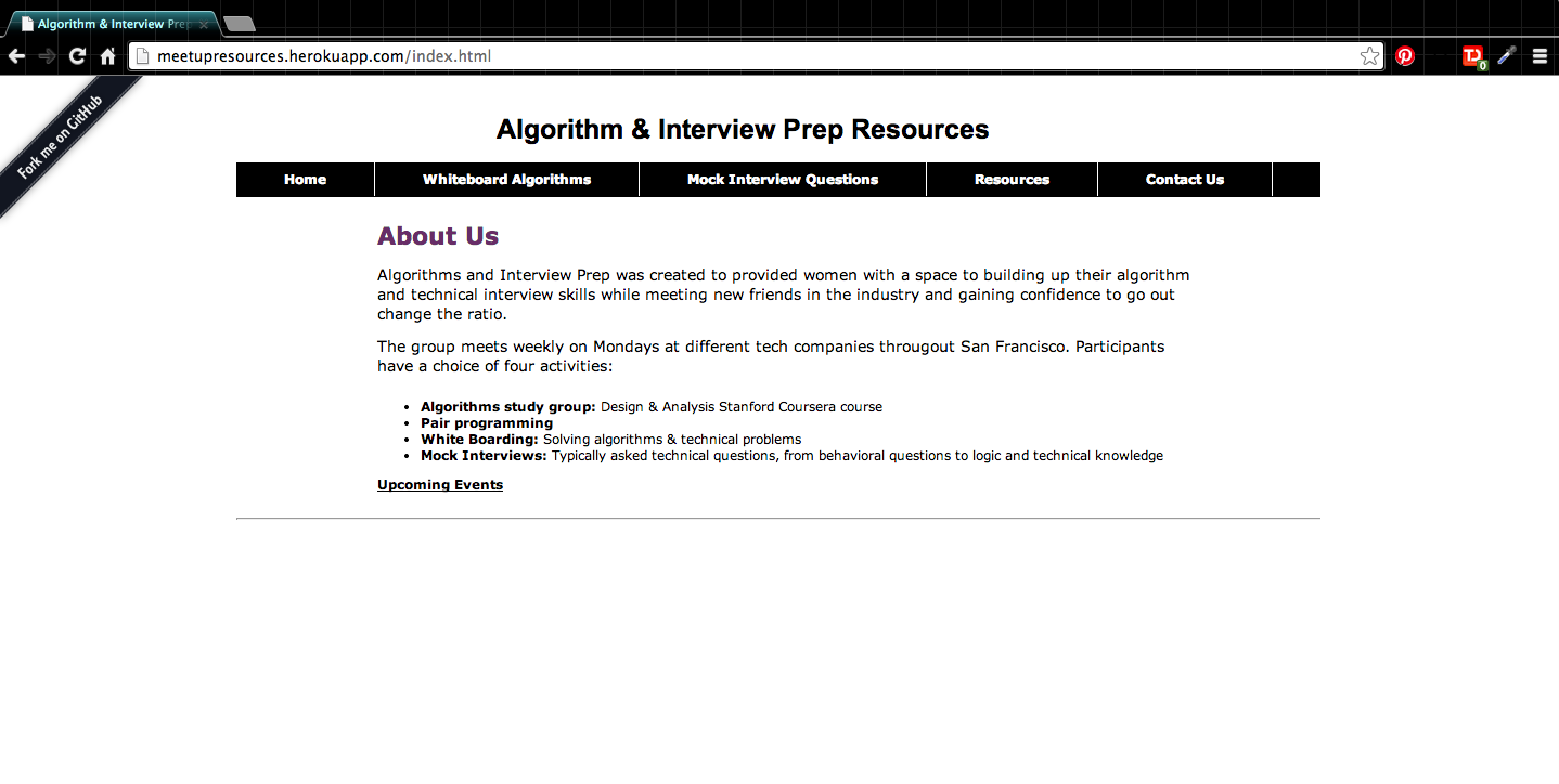 This website contains study, practice and code challenge material necessary to host an Algorithm and Interview Prep event for women in tech