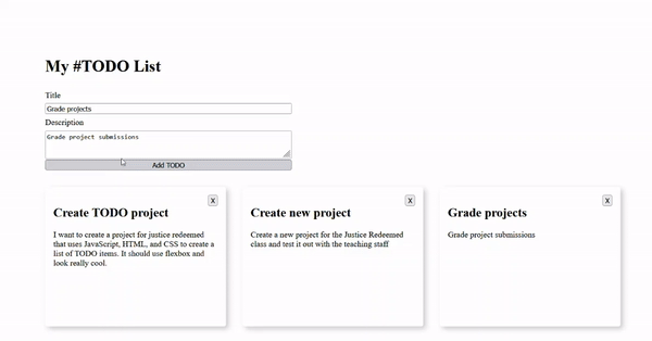 The goal of this project is to create a dynamic TODO list in the browser. You will use JavaScript to add items to the page, alongside CSS to style and format the HTML.