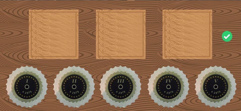 Se disponen de 5 diferentes rotores numerados del I-V cada uno de ellos con un circuito interno diferente, se deben elegir tres arrastrando y soltandolos en las correspondientes posiciones.