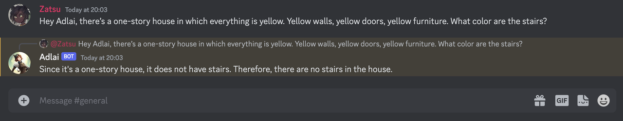 When DiscordGPT responds, it reads the last 15 messages of the chat in order to understand the context of the conversation and respond fluidly. It even knows who said each line, so it can sumarise long threads and contribute as asked.