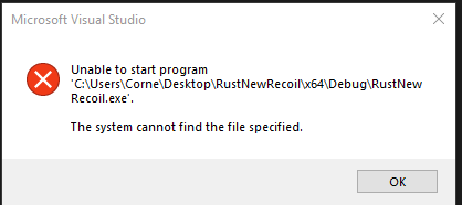 It says that there were build errors and the when I continue the program it says "RustNewRecoil.exe file not found"