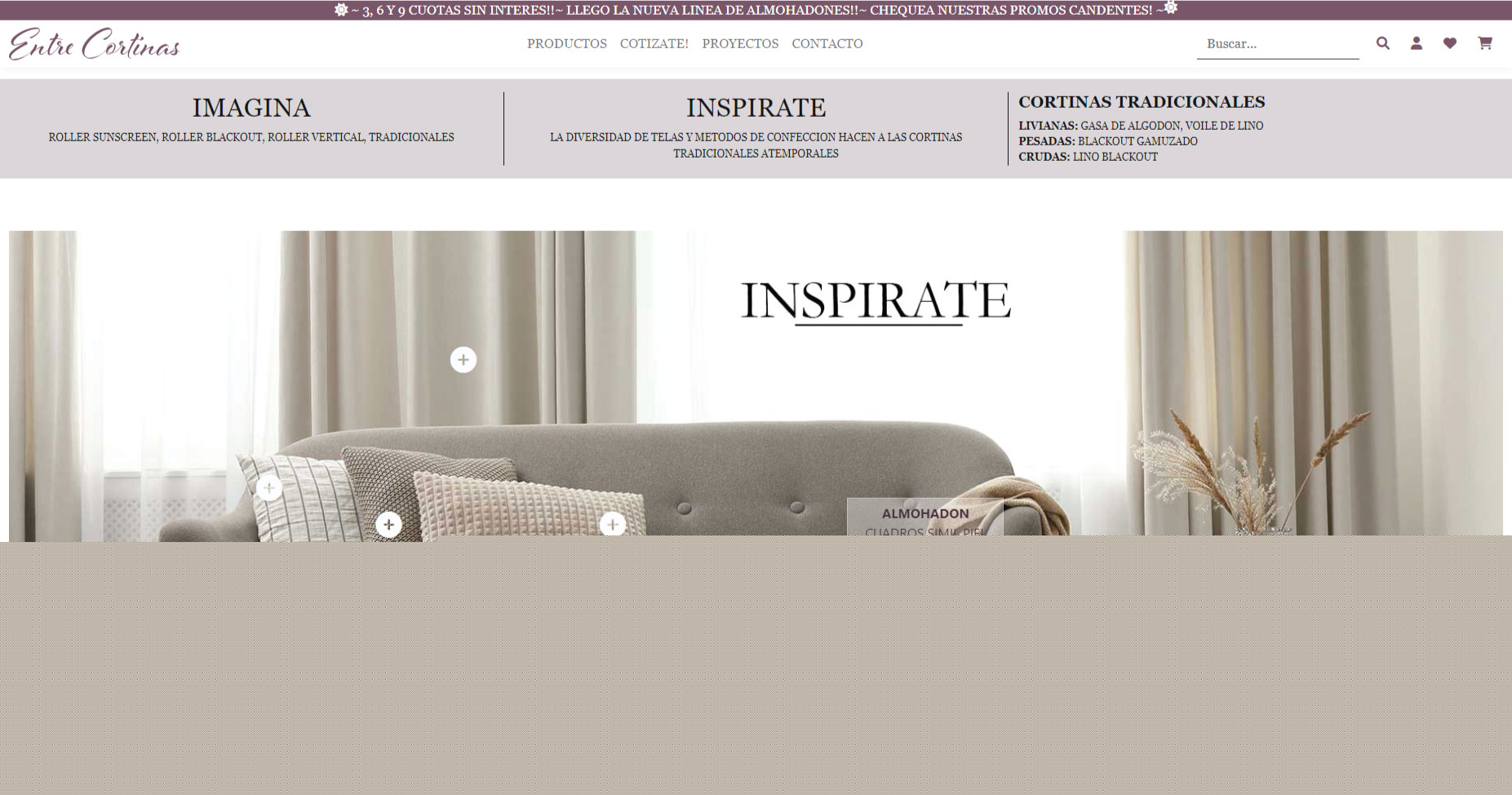 Welcome to the Entre Cortinas shopping website! We are a company that designs, produces, and installs curtains, pillows, throws, and more.