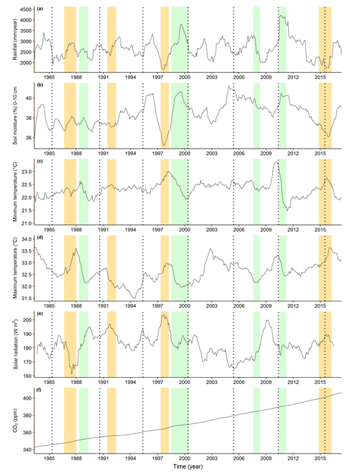 The code (BCI_climate_code) extracts and formats relevant climate variables to produce the following figure (from Rutishauser et al. (in review)):