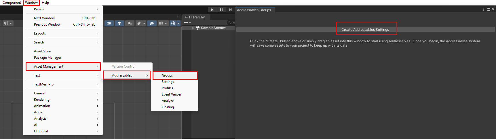 - Step 10: In the Addressables window, instead of using the menu