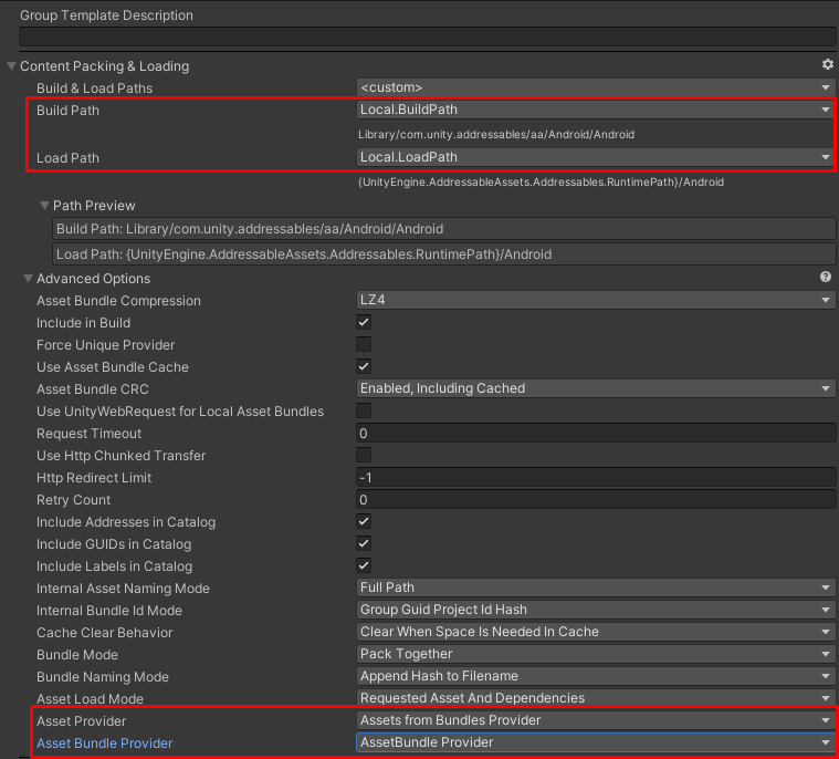 - Since Unity 6 , Android: Added the Addressables for Android (com.unity.addressables.android) package. This package provides Play Asset Delivery support for Addressables.