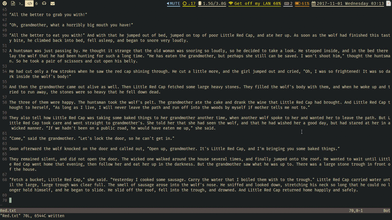 vim-story Navigate local keyword completions with ease. Usage Call :Story to begin your completion. <CR> to continue the completion. - to go back one step. <BS> to choose current line and end the completion.