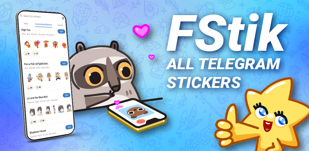 Huge catalog of sticker packs for Telegram for every taste in one application. A large and convenient set of various and unique stickers for their quick and easy search and installation.
