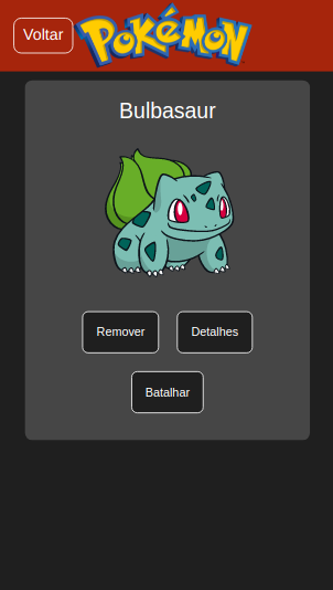 Pokedex com os Cards de Pokemon incluidos na Pokedex, podendo removĂŞ-los ou ver seus detalhes.