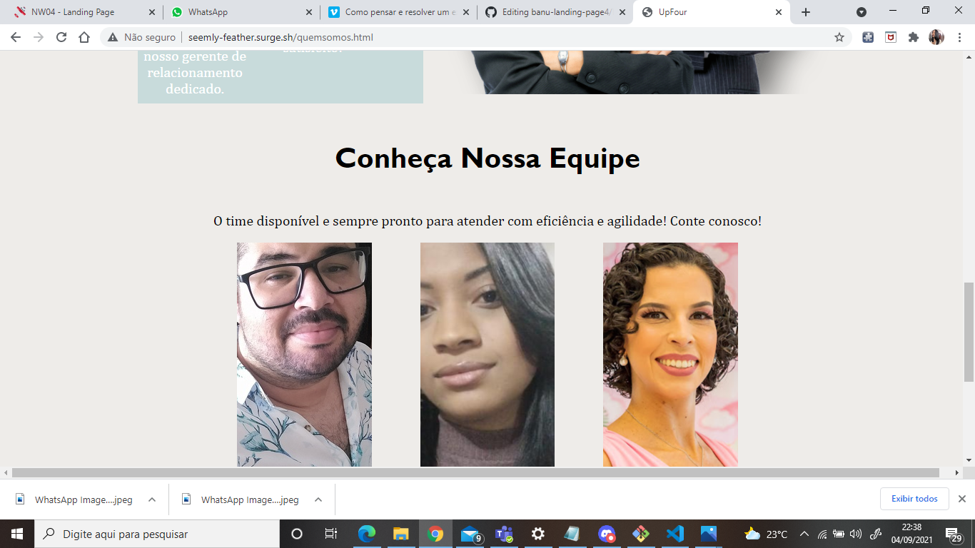 Responsividade testada no IPhone 6/7/8 e para a versão desktop de tela 1280px de largura. Seguir semântica do HTML5. Links com ícone para redes sociais abrindo uma nova aba. CSS deve estar em arquivos separados e com comentários das partes de layout. Seguir paleta de cores baseadas na logomarca provida pelo cliente. Conter diferentes diferentes.