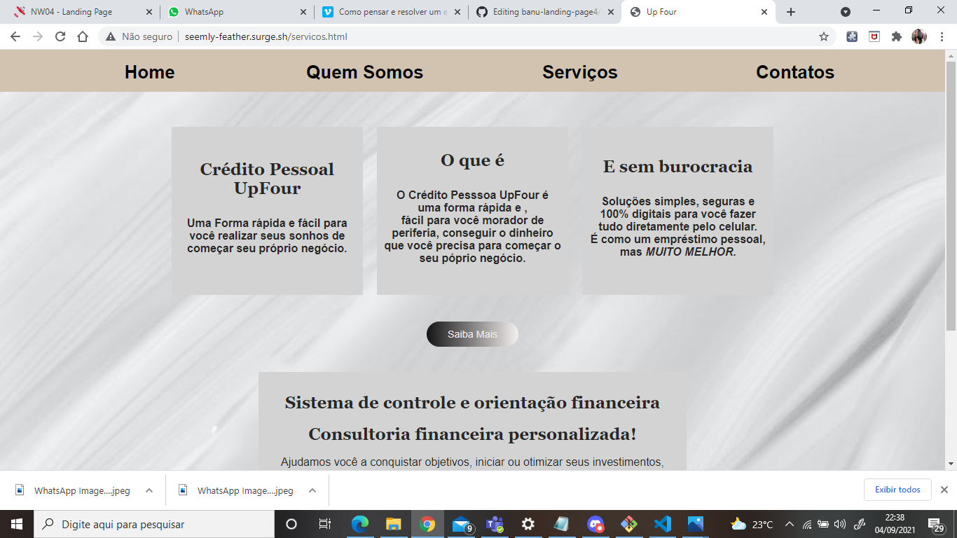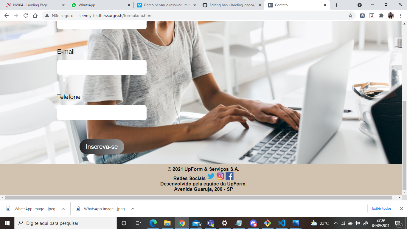 O Projeto Landing Page foi desenvolvido em um grupo com Bruno,Nayara,Joana.com o intuito de colocarmos em prática o conteúdo estudado durante o curso, a saber: HTML e CSS.Foi escolhido o projeto da UpForm, pois se trata de um projeto da grande população brasileira. Na qual tem extrema dificuldade em conseguir credito, para empreender em nosso pais.