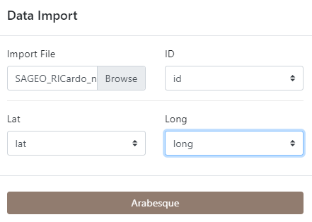 Si vous sélectionnez "Import Location", vous devez charger un fichier GEOJSON ou CSV, puis choisir l'ID des nœuds et leurs coordonnées géographiques lat/long.