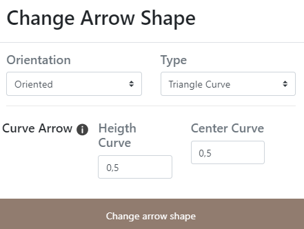 Arrow / Hauteur (Base) : La valeur de ([0,1]) est celle du centre de la courbe ; le point est identifié par l'indication d'un d'éloignement au nœud d'origine du lien.