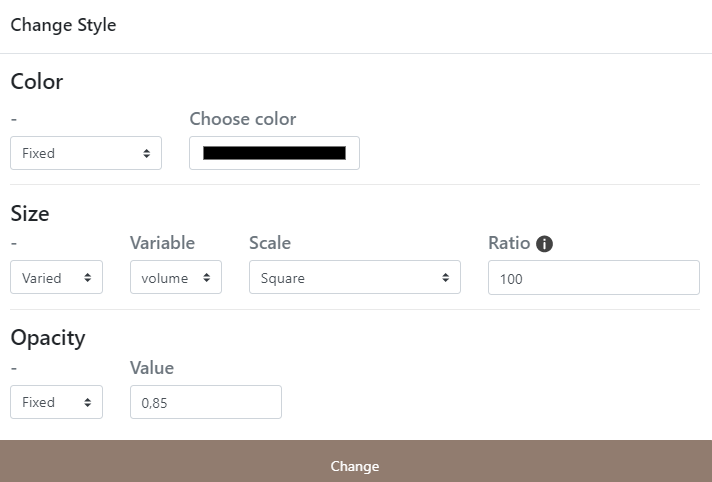 Le choix de nuancer la teinte des liens est associé ici à un caractère (pseudo) continu dont il est nécessaire de préciser le type (quantitatif).
