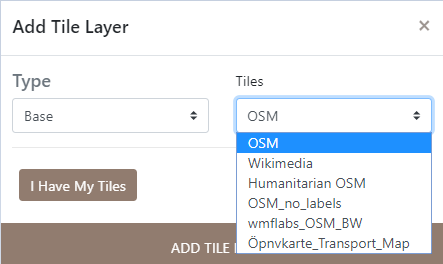 Il est également possible d'ajouter ses propres tuiles via un géo serveur, en cliquant sur