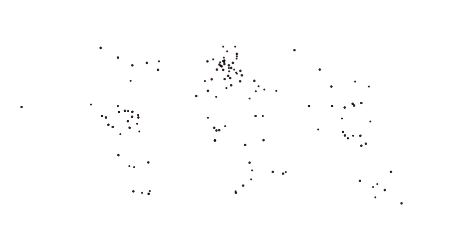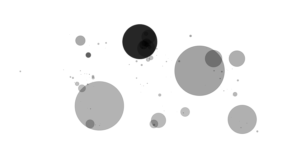 Application sur les noeuds : symbolisation des noeuds (barycentre des zones) avec une forme cercle (choix unique) de taille fixée et de teinte unique noire.
