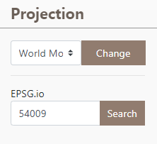 Pour les données observées à l'échelle mondiale ou régionale (sub-continentale), il est possible de changer la projection du fond de carte proposé ou de la vue affichée - pour les données locales, il est possible d'ajouter des tuiles vectorielles (voir section 5.5).