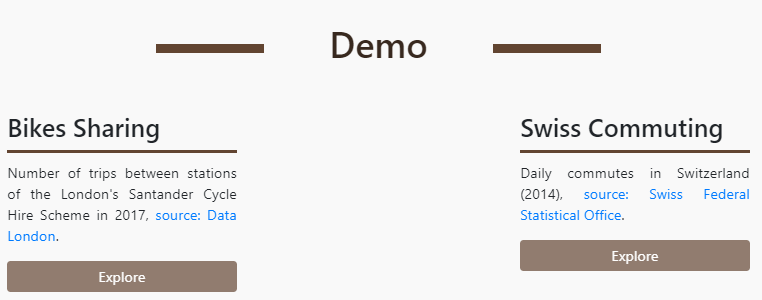 Pour une première découverte d' Arabesque, vous pouvez utiliser les jeux de données fournis comme exemple dans la section Démo.