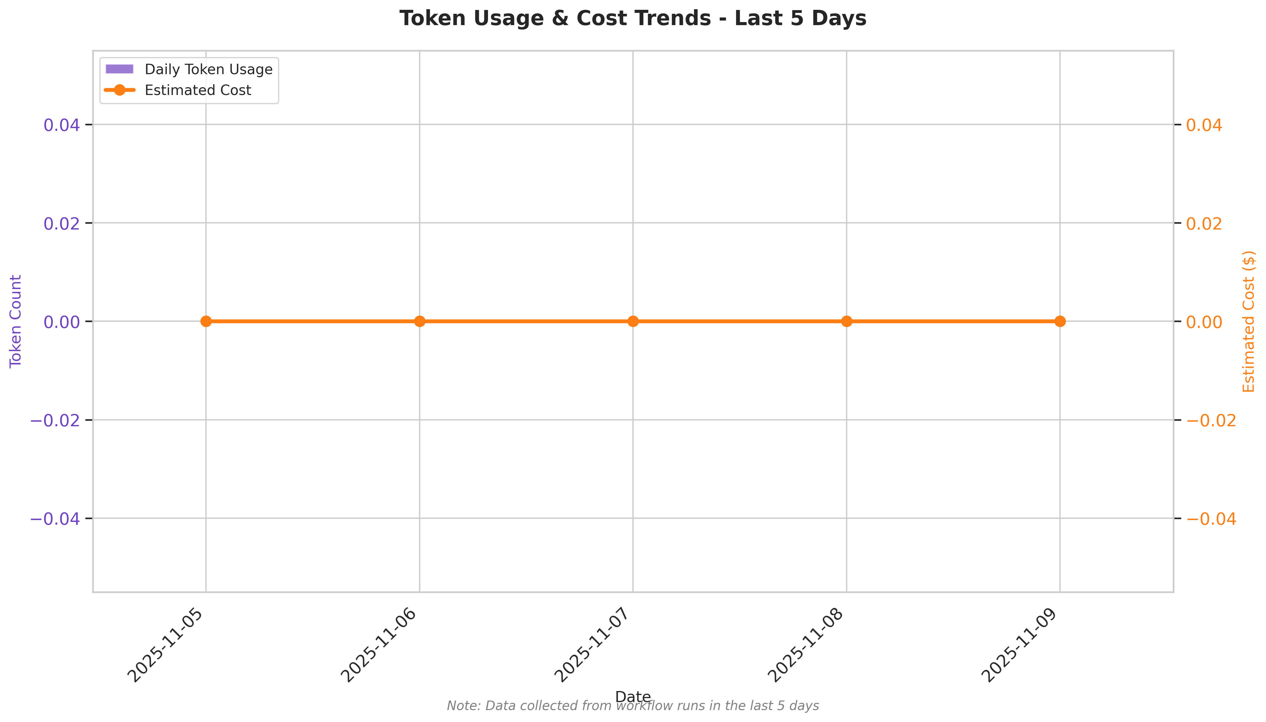 Note: Token usage and cost data are not being recorded in the workflow run summaries. This represents a monitoring gap that should be addressed to track resource consumption and optimize costs.