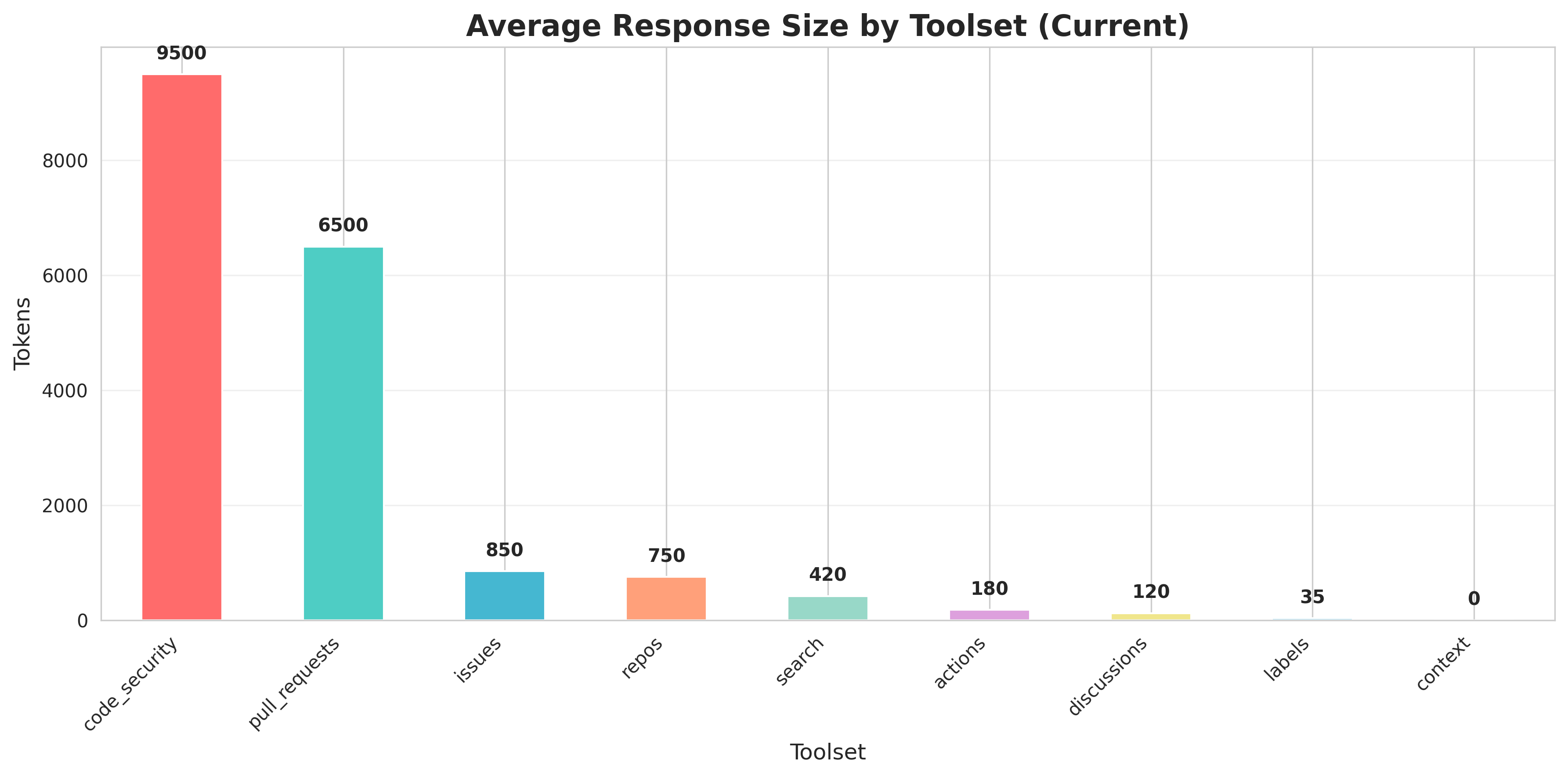 list_code_scanning_alertsstands out as the most bloated tool, consuming 9,500 tokens due to embedded educational content. The most efficient tool isget_labelat just 35 tokens. Context authentication issues preventget_mefrom being useful in workflow environments.Full Structural Analysis Report